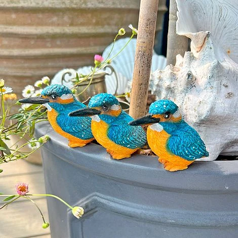 These wonderfully detailed Kingfisher bird ornaments are the perfect size to place on the top of planted containers to add that finishing touch. Made from hand finished resin, these birds are weather resistant and suitable for outdoors or in. Each Kingfisher bird is 6cm tall, 9cm long, 4cm wide.