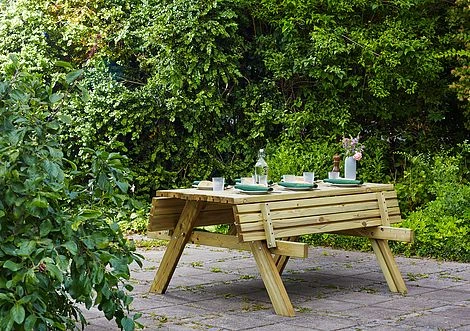 The Classic Picnic Bench is a wooden garden picnic table that is well built, with functionality in mind. This is because the picnic table bench seats fold up leaving a smaller footprint if you need to store away. The timber in this product is sourced from FSC well managed forests and treated to protect it from wood rot and decay.