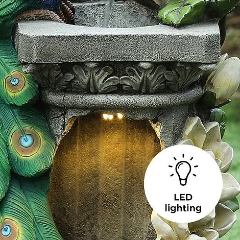 Peacock LED Garden Water Feature