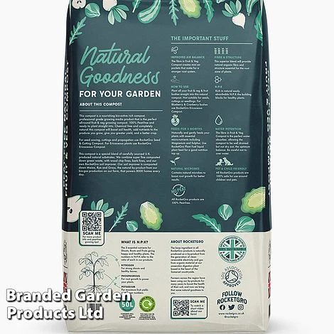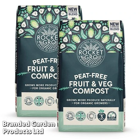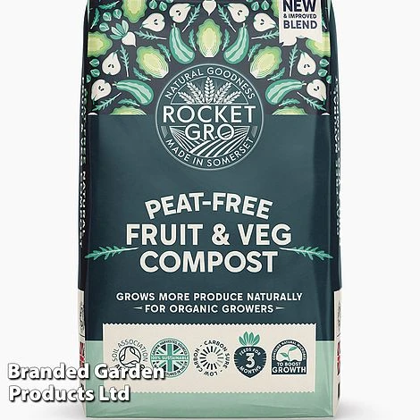 A 100% organic, chemical-free and peat-free compost specially formulated for all your produce growing needs. RocketGro Fruit & Veg Compost contains the perfect balance of nutrients to feed your veg plants, young fruit bushes and fruit trees for 3 months without the need for fertiliser top-ups. This compost will give you high performance, greater yields, healthier and tastier fruit and veg.