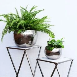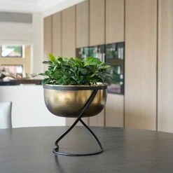 Indoor Kensington Brass Metal Round Planter On Stand H30Cm W28Cm